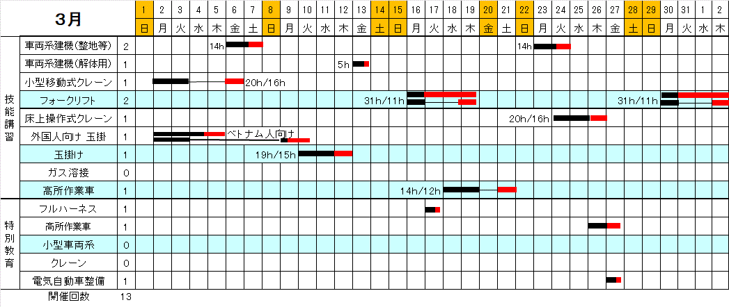 ・車両系建設機械(解体用)・・・1/26、2/12、3/13